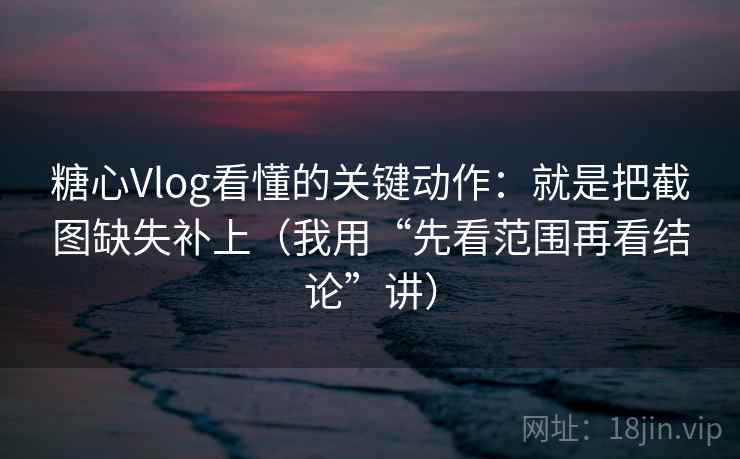 你是不是也曾有过这样的体验:刷着刷着“糖心Vlog”,明明内容看起来很丰富,但总觉得少了点什么,一知半解,欲罢不能?别担心,这并非你的错觉。很多时候,“糖心Vlog”的魅力,恰恰隐藏在那些看似不经意、实则至关重要的“截图缺失”之中。而今天,我就要揭秘这个看懂Vlog的“隐藏关卡”——学会把截图缺失补上,用“先看范围再看结论”的思维方式,让你彻底告别云里雾里。